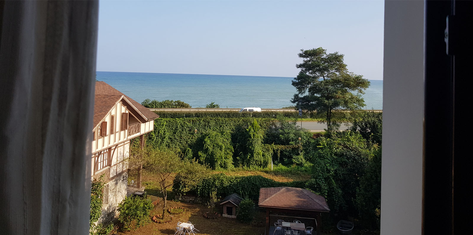 Güzel bir bahçeye bakıyorum. Boş bir köpek kulübesi, otelin sanırım özel misafirleri için ayırdığı bir konak, çardak, karada seyir hayalinde olan bir sandal… Sağanak yağmurlu geçecek olan günün geri kalanına inat serin ve açık bir hava. Manzaramın denizle arasına giren şehirlerarası otoyolda geçen arabalar olmasa eğer, sessizliğin içinde daha nice kuş ve böcek ile muhabbet şansım olabilirdi.